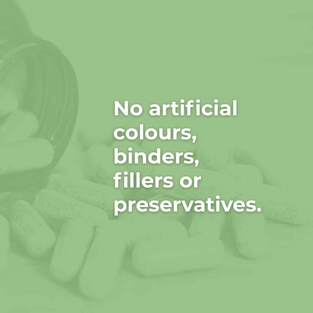 Contains only high-quality active ingredients, with no artificial colours, binders, fillers, or preservatives.