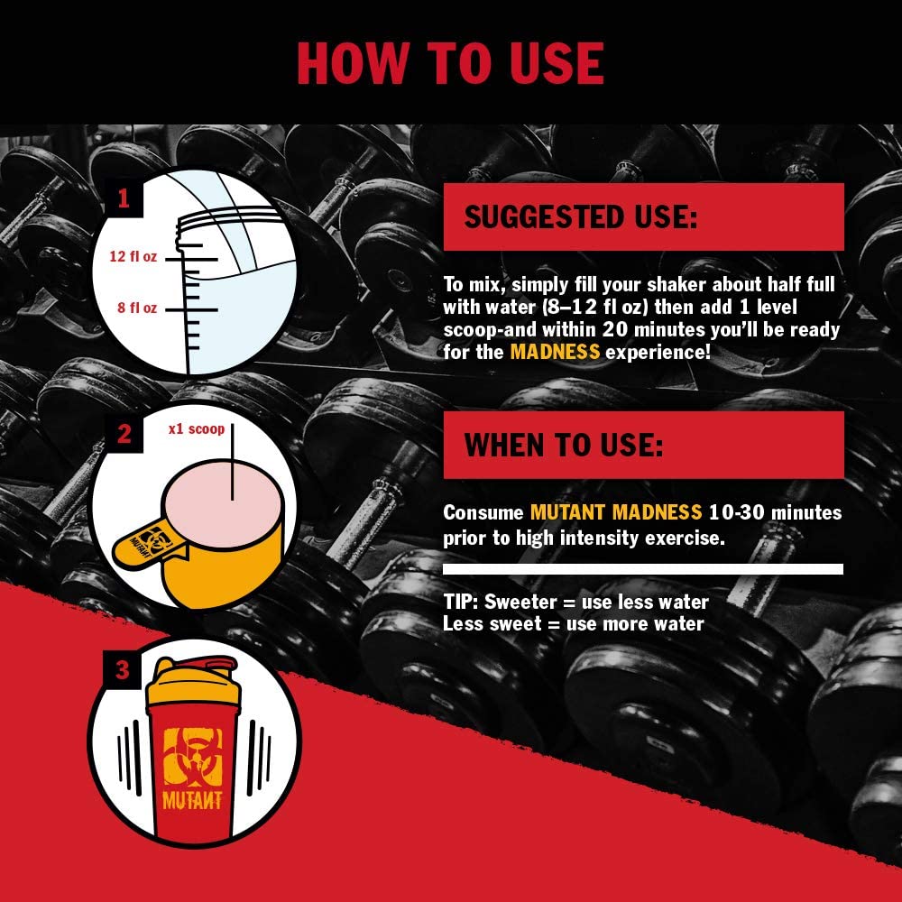 MUTANT MADNESS seizes the pre-workout experience and launches it into the stratosphere! This maximum-strength formula will jolt your senses and help you demolish your next workout. Sick pumps, razor-sharp focus and unstoppable intensity await you.*