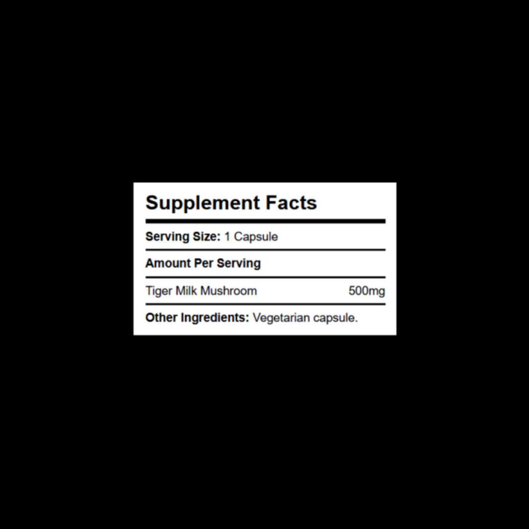 - 500mg pure powdered Tiger Milk Mushroom per capsule