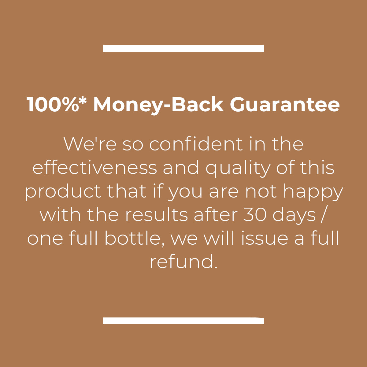 We're so confident in the effectiveness and quality of this product that if you're not satisfied after 30 days or one full bottle, we’ll issue a full refund.