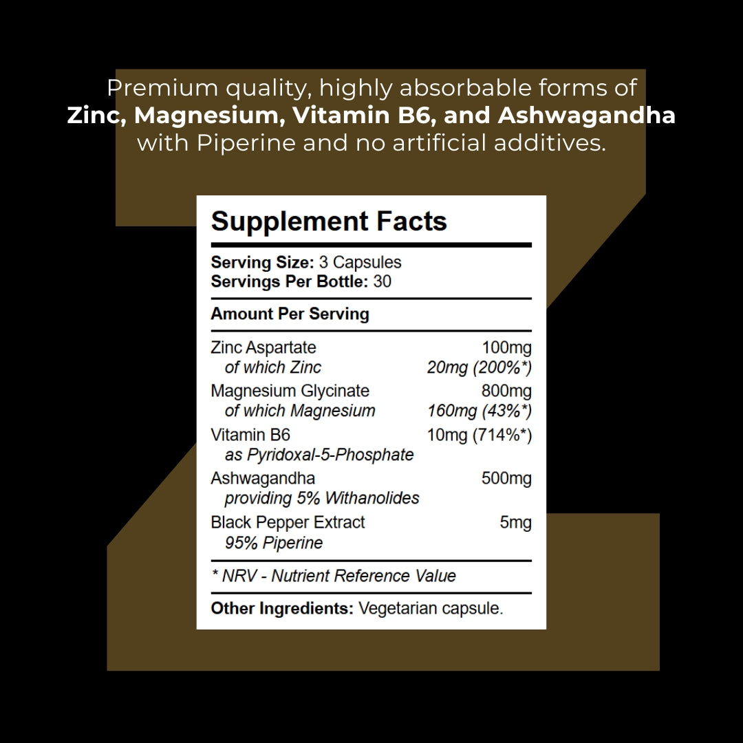To further boost its effects, ZMK Pro includes 500mg of Ashwagandha extract standardised to 5% withanolides for stress support, alongside Black Pepper Extract (95% Piperine) to enhance nutrient absorption and potency.